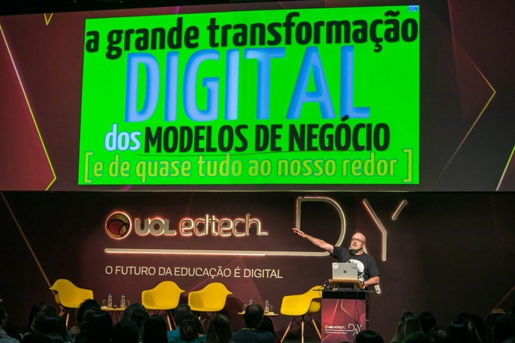 “Uma das coisas mais fáceis é ser analógico no mundo digital. Estar online, eletrônico e informatizado não é ser digital. Ser digital está ligado ao comportamento”, disse Alex Augusto – CEO do UOL EdTech, na abertura do evento.