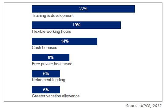 Mais do que horários de trabalho flexíveis ou bônus financeiros, hoje, os colaboradores querem oportunidades para aprender mais, pois sabem a importância do aprendizado contínuo para acompanhar o constante fluxo de mudanças que se impõe. O aluno digital já reconhece as ações de treinamento e desenvolvimento como o benefício mais relevante de uma empresa.