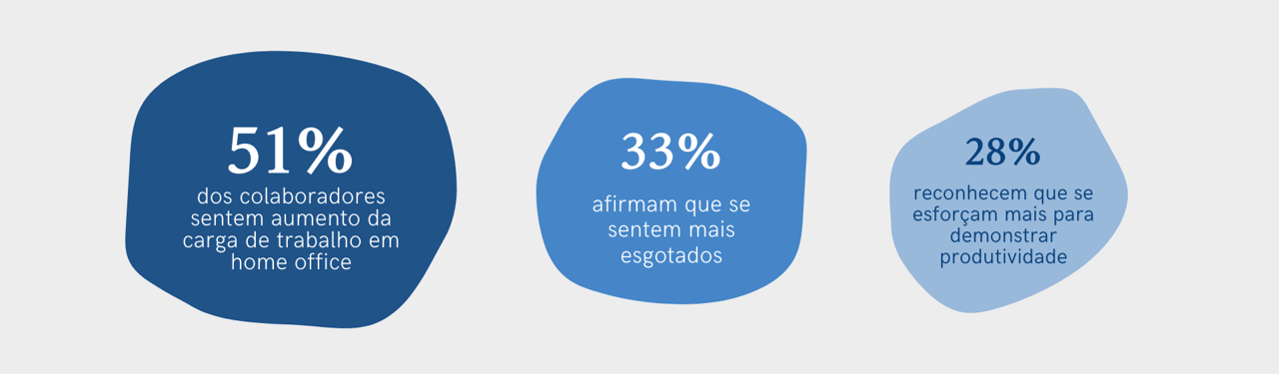 Além disso, 33% dos entrevistados afirmam que têm se sentido mais esgotados por conta do acúmulo de funções e 28% reconhecem que estão se forçando a trabalhar mais para se sentirem mais produtivos.